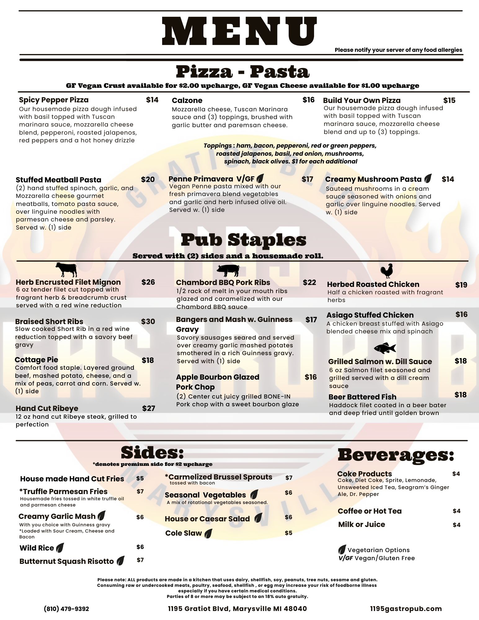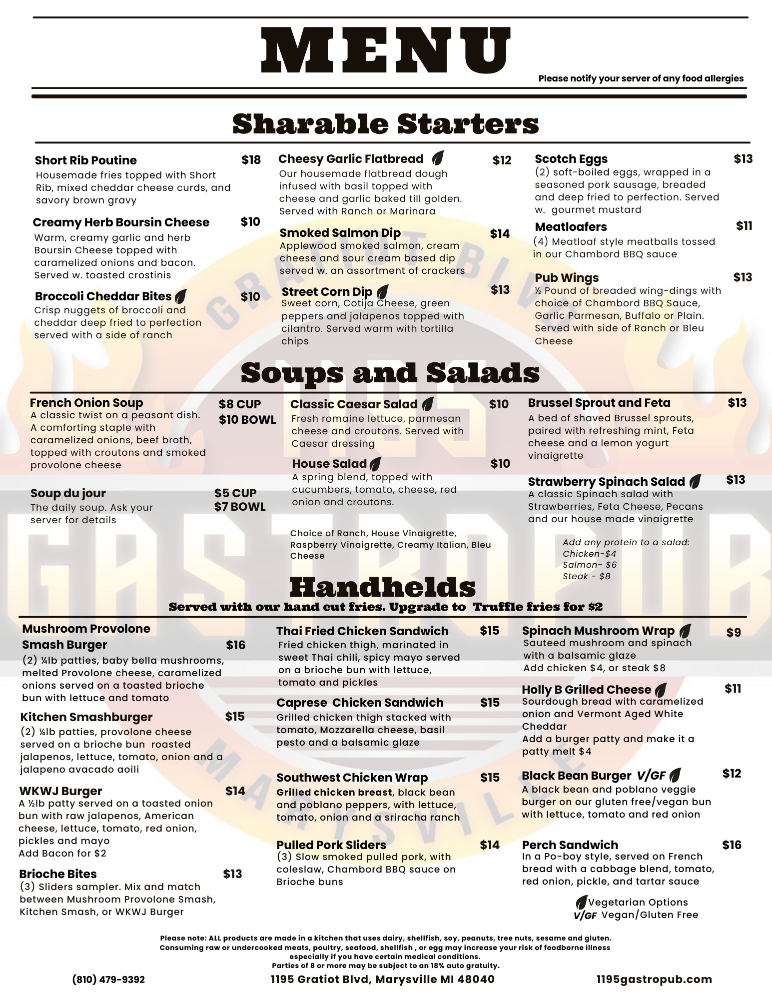 Menu items and prices may change. The printed menu at the restaurant reflects the most current offerings and pricing.